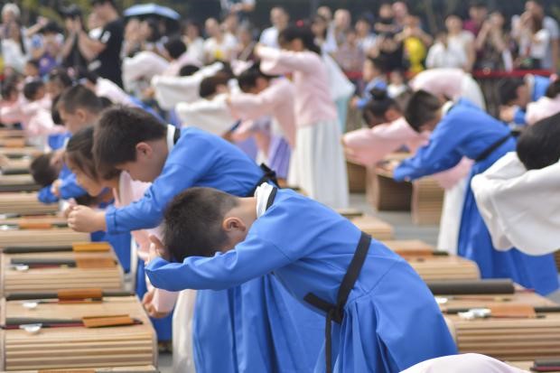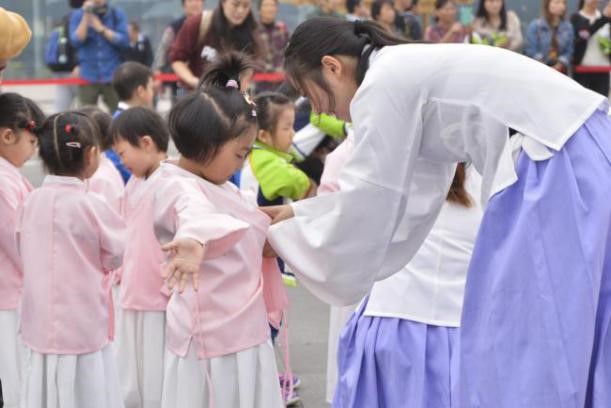 ★感恩禮儀: 禮儀是道德的表現形式,身著漢服、謝恩作揖、擊鼓明志,感恩儀式的儀式感有助于加深學生對“孝親尊師”美德的認知,成為“感恩”“知禮”的少年君子。